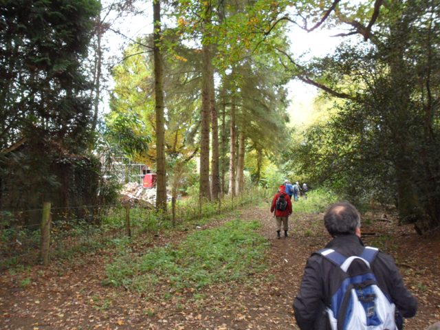On 30 October 2011 John Burbage was a t the head of a group of ramblers doing a linear walk from Milford to Haslemere. From the seven who boarded the train from Waterloo we grew to 11 by the time the walk started. John announced at the start that the morning would be longer than anticipated as we would be walking on to the Devil's Punchbowl for lunch so to fortify ourselves for thelonger walk we began with a bit of road walking through Milford where the local Co-opstore provided some nibbles to eat along the way Then it was out into the countryside