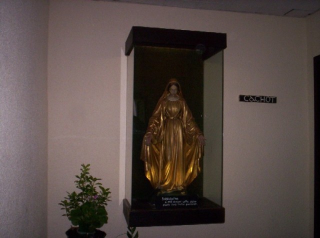 Next stop for the indulgence devotions was the Cachot (old disused prison) in which she lived when her family fell on hard times. Here there were more photos and statues on display.